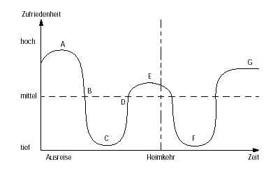 Phase F: for many people surprisingly a second shock comes up on the return. The advantages of a superficial kindness can be seen and missed.